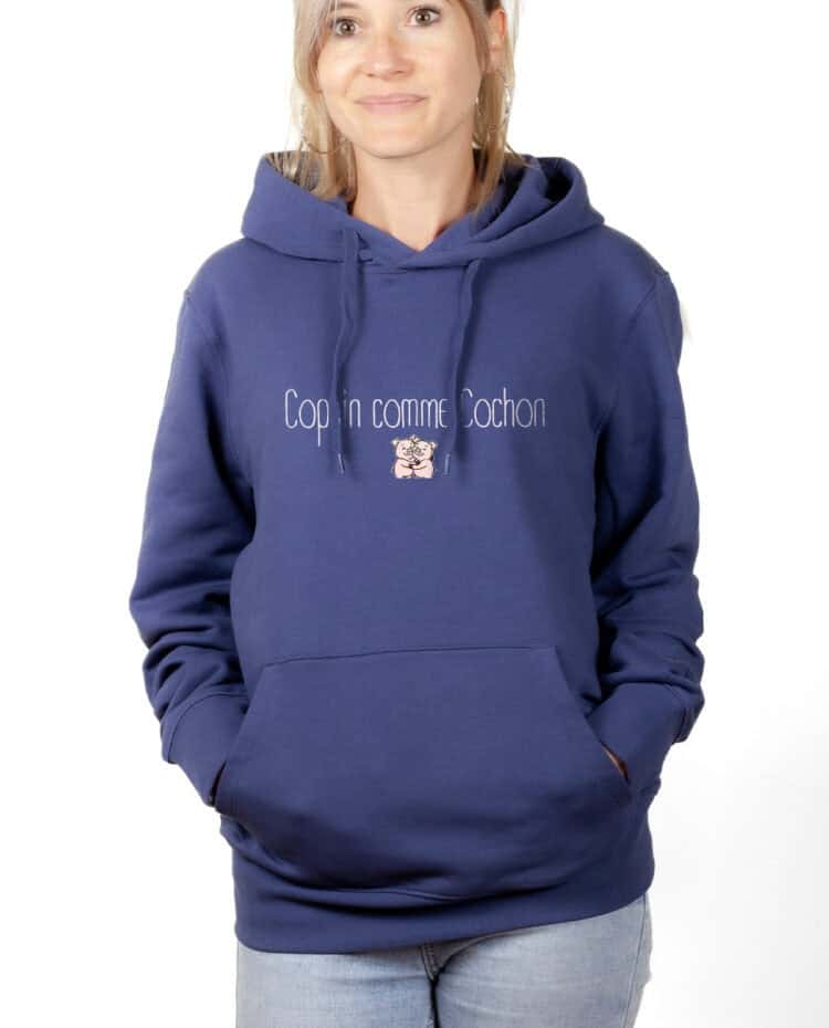 Copain comme cochon, Le Sweat à capuche pour Femme : Copain comme cohon, phrase désormais entrée dans le langage courant. La question qui nous taraude tous en revanche c’est…Les Guilain ont ils bouffé leur cochon ?? Parce qu’il est pas vétérinaire, Jérôme, il fait pas les bêtes !!! Ce modèle Les bronzés font du ski répandra la bonne humeur autour de vous !