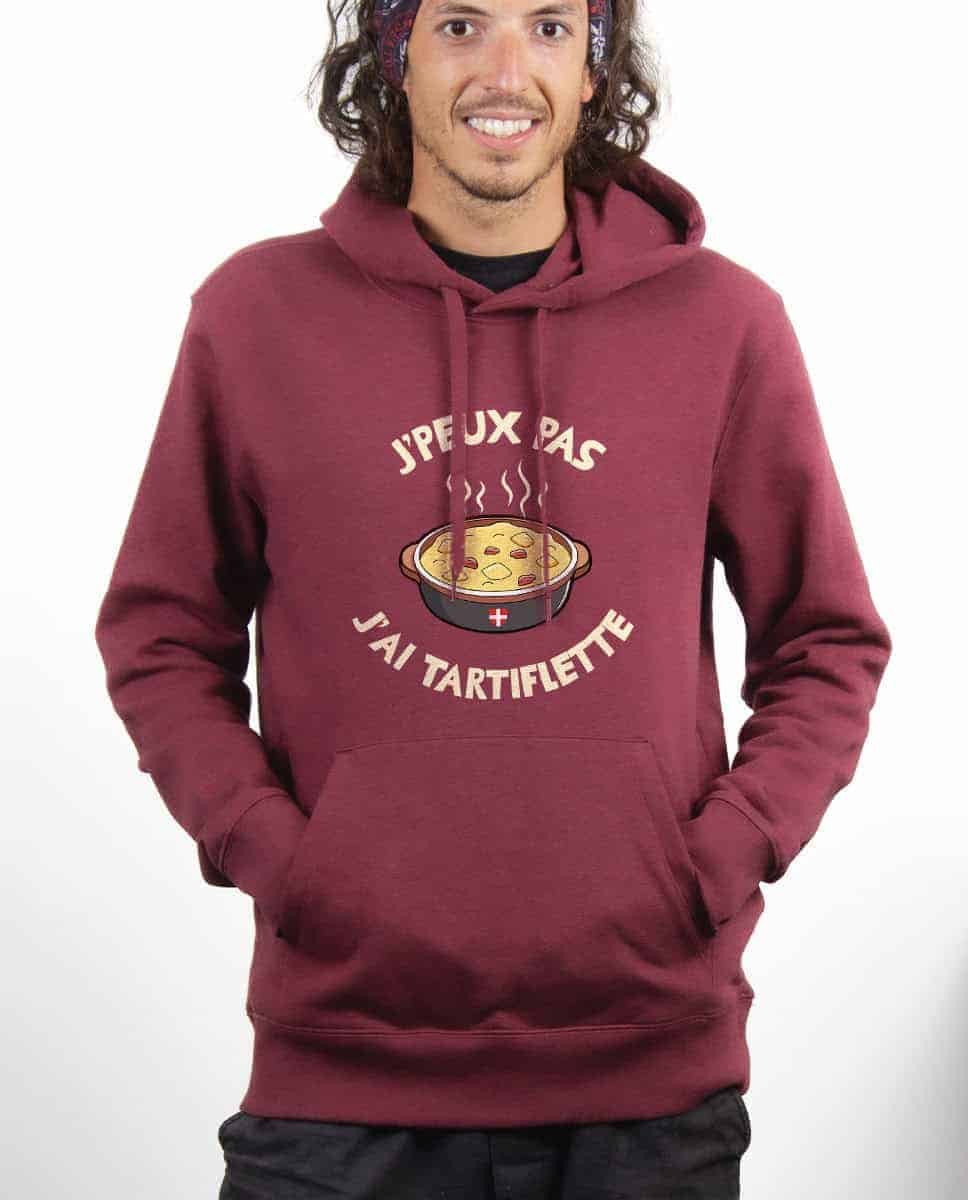 J’peux pas j’ai tartiflette, Le Sweat à capuche pour Femme : Votre plat préféré à base de fromage et patates, c’est la tartiflette. Plus rien n’a d’importance quand l’odeur du fromage se répand dans votre maison. Montrez votre amour pour le fromage et la tartiflette en particulier, et n’oubliez pas de donner votre recette à vos amis car de toute façon ils vous la demanderont !