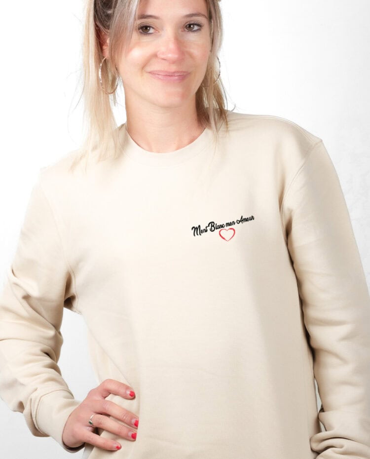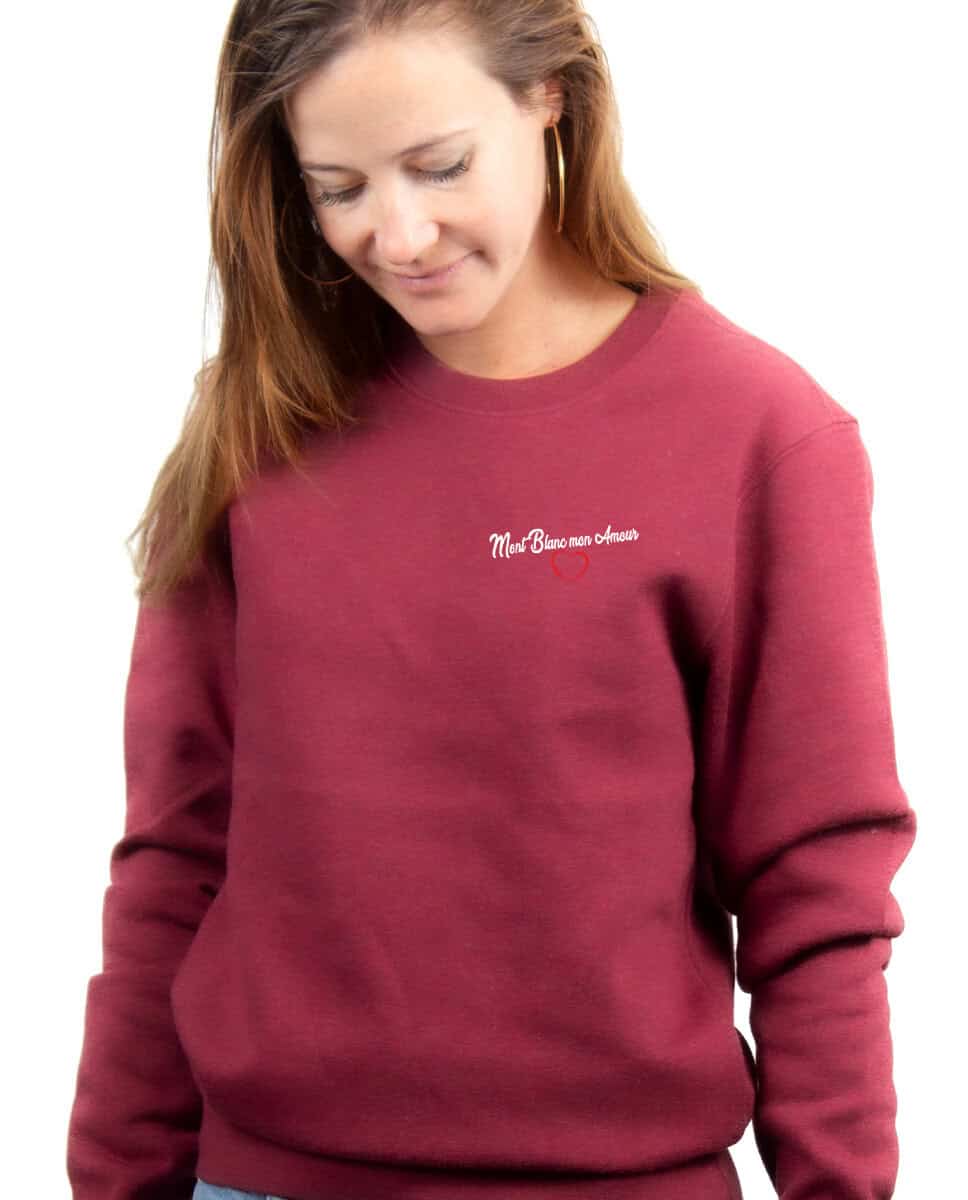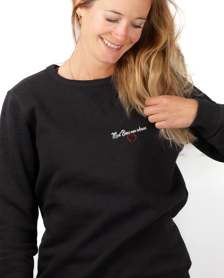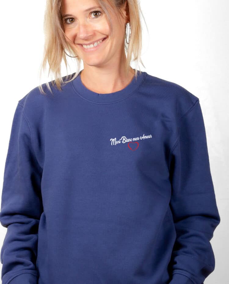 Mont Blanc mon Amour, Le Pull pour femme : Le Mont blanc vous le portez dans votre coeur, depuis longtemps et pour toujours. Ce mythique sommet vous fascine autant qu’il impose votre respect. Peut être avez vous d’ailleurs prévu de le gravir, ce Mont Blanc, ou peut être même est ce déjà fait ? Portez ce modèle au message à la fois sobre et fort. une déclaration d’amour au Mont Blanc, cette montagne si chère à votre coeur.
