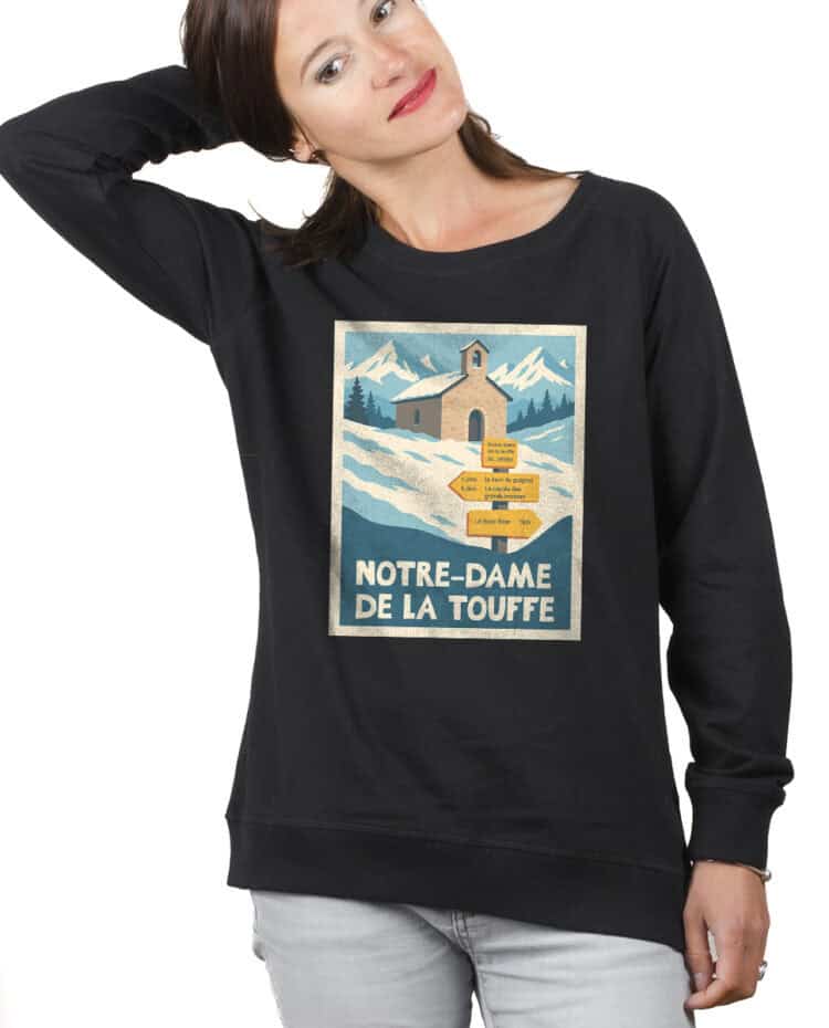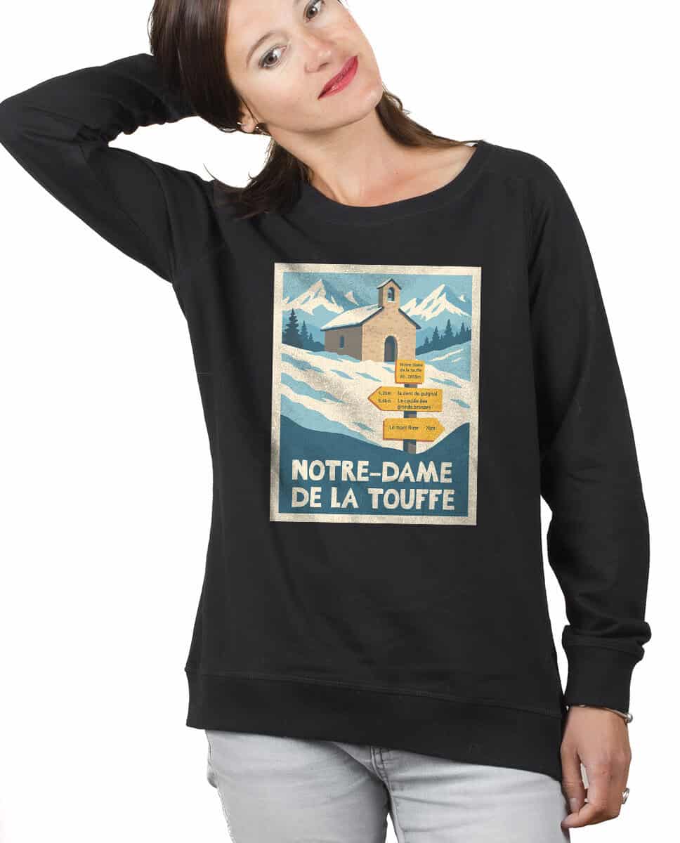 Notre Dame de la Touffe, Le Pull pour femme : Le fameux reposoir qui tombe à pic pour les randonneurs un peu perdus, fatigués et à bout de nerfs ! On sait qu’il est situé dans le massif de la Touffe, mais c’est tout ! Tout simplement parce que, comme Popey, on n’y a jamais foutu les pieds ! Alors on décide que les femmes, on reste là, et que vous, les mecs, vous allez chercher l’hélicoptère. Et puis Jean Claude il reste là, bin oui, au cas où on aurait un malaise quoi ….
