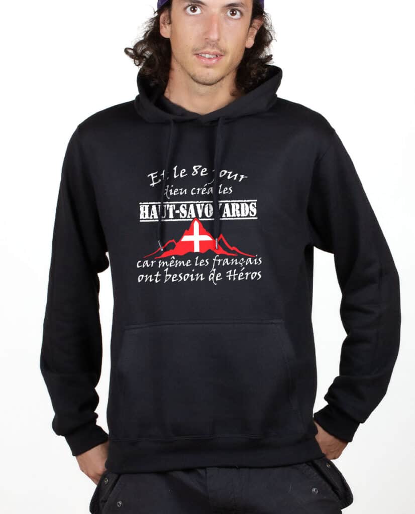 Et le 8ème jour Dieu créa les Haut Savoyards car même les Français ont besoin de Héros. Consacrer un jour entier à la création de cette espèce spéciale était la moindre des choses pour parvenir à un tel degré de perfection, n’est-ce pas ? Un pull pour les Haut Savoyards fiers de l’être et qui ont de l’humour !