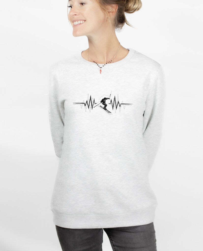 Ce Pull arbore un motif unique qui fusionne subtilement les battements de cœur avec la silhouette d’un skieur en mouvement. Les battements de cœur symbolisent l’excitation et l’adrénaline que l’on ressent en dévalant les pistes enneigées. Le motif dynamique et énergique de ce Pull reflète ainsi l’intensité et le plaisir que l’on ressent en pratiquant le ski. En portant ce Pull, vous exprimez fièrement votre passion pour le ski et affichez un style résolument moderne. C’est un choix parfait pour associer confort, style et amour du ski.