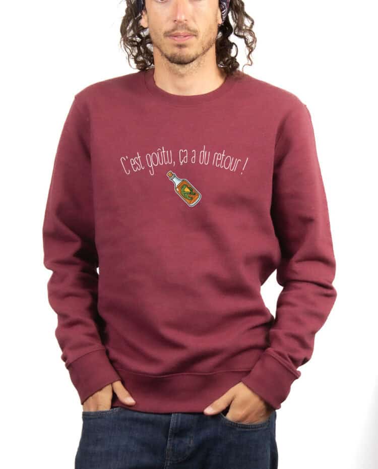 C’est goûtu, ça a du retour !, Le Pull pour homme : La liqueur d’échalote, relevée au jus d’ail, c’est vraiment LA boisson du vrai montagnard ! C’est pas une boisson pour mauviette. Alors on s’accroche, interdiction de baver, recracher ou tomber sous la table ! On gargarise, on déguste, et on se ressert ! Ce modèle Les Bronzés font ski fera sensation au moment de l’apéro ou du digestif !