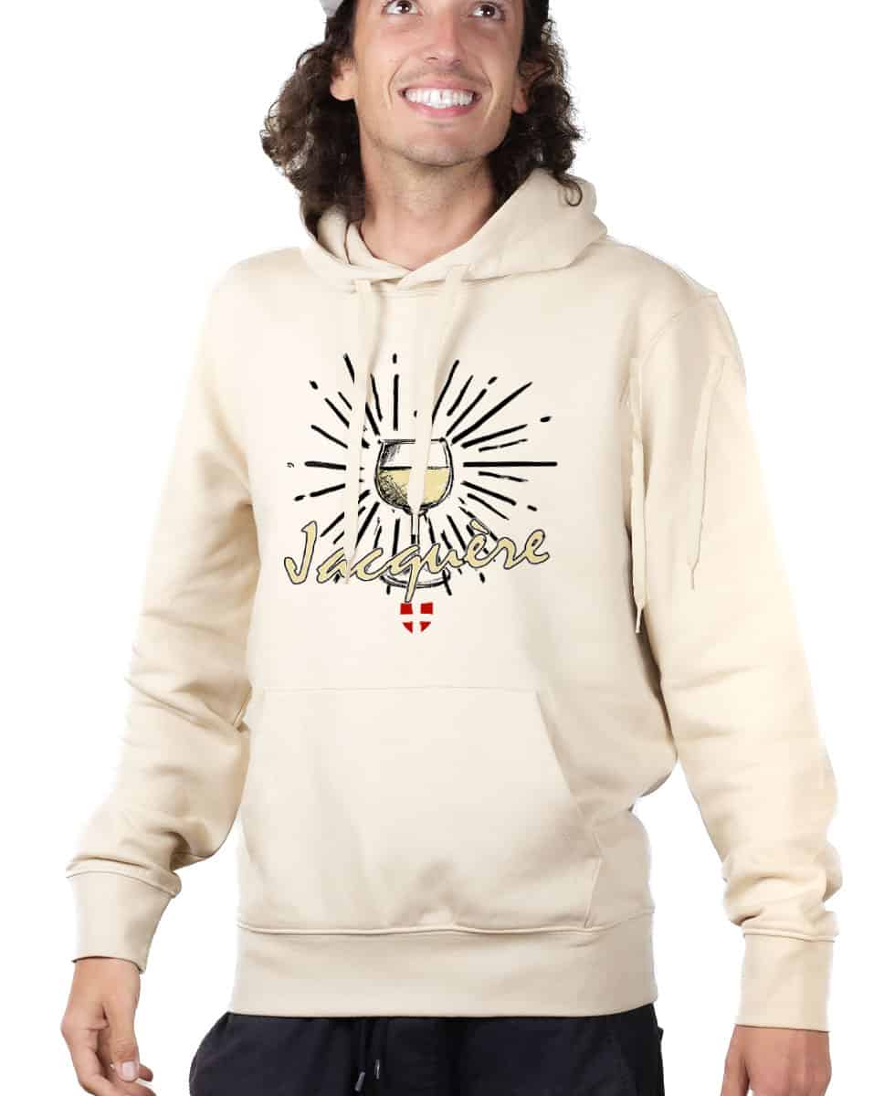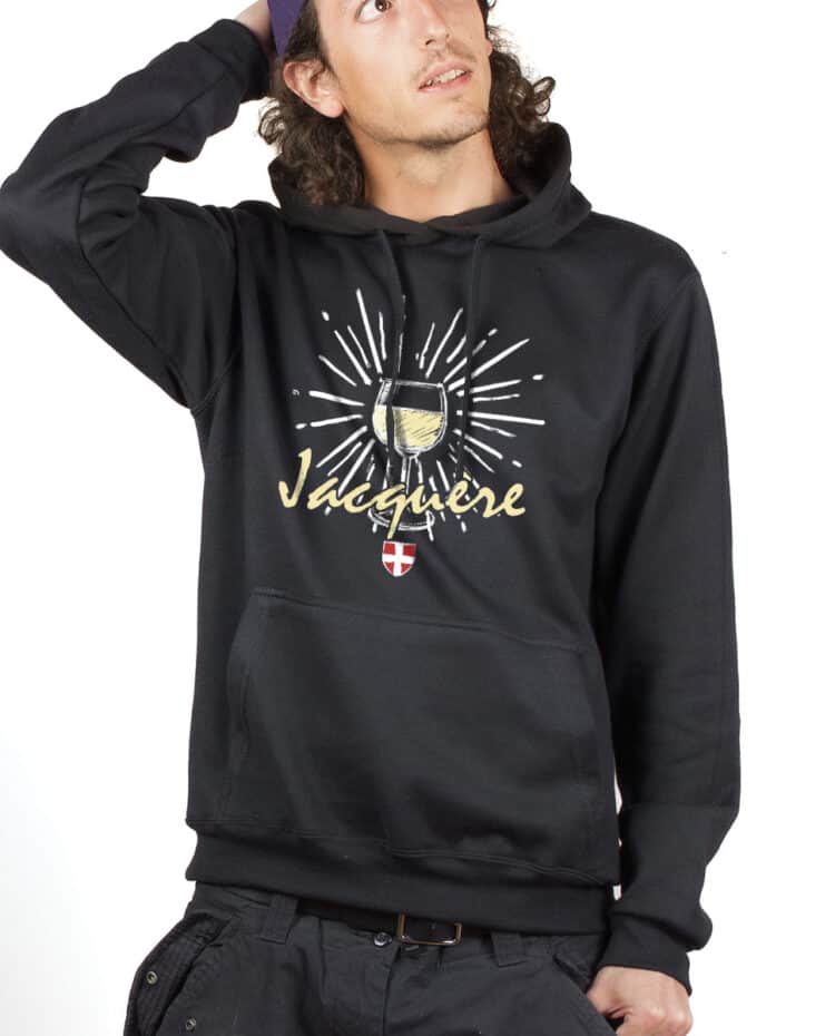 Un sweat pour les amoureux de ce vigoureux cépage. Affichez votre préférence pour la Jacquère ! Et si vous êtes vous même vigneron, ce modèle sera parfait pour égayer vos tenues de travail. Vous ferez sans aucun doute sensation dans nos belles montagnes, et contribuerez à partager la bonne humeur comme on partage une bonne bouteille de vin de Savoie !